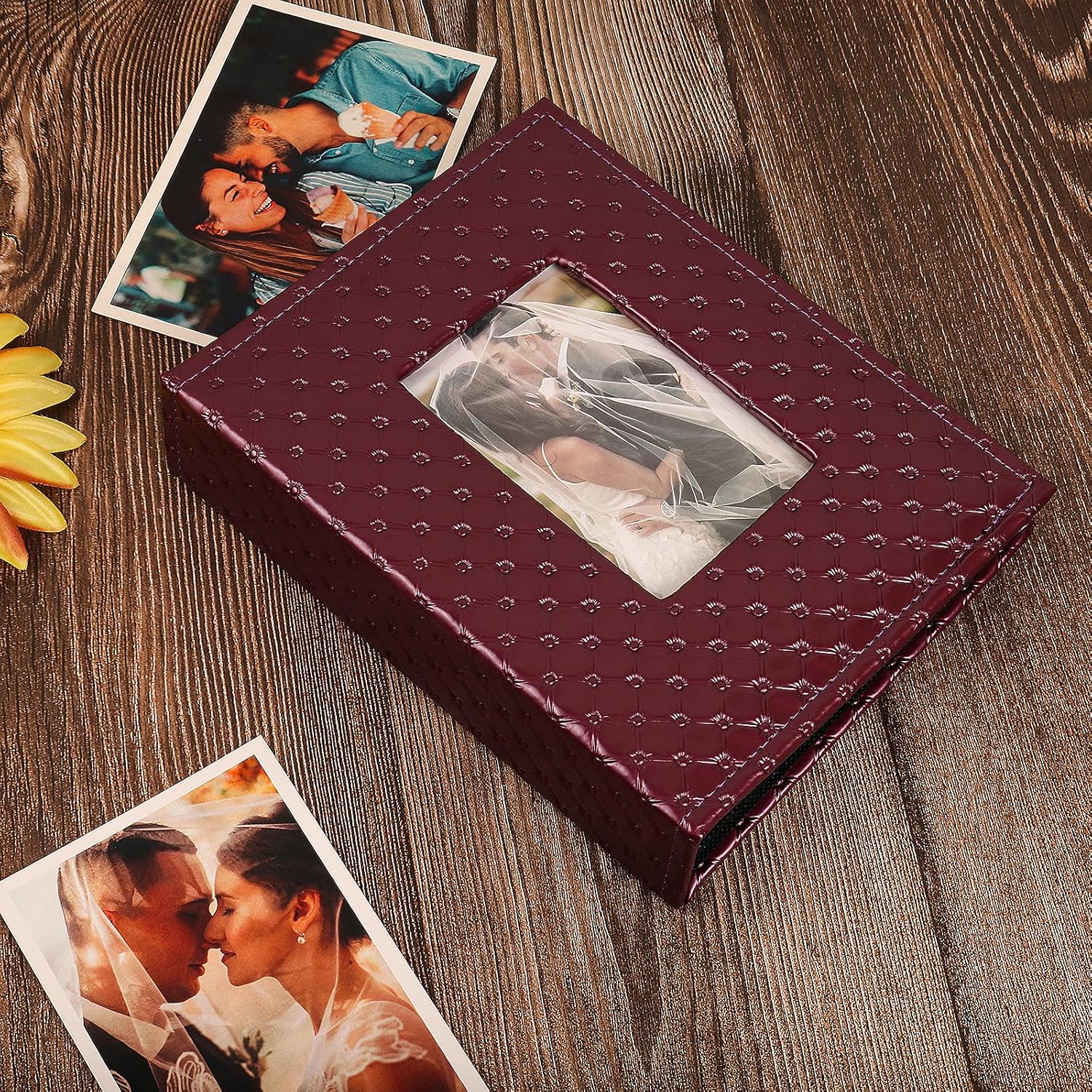 RECUTMS Leather Photo Album Holds 200 4x6 Pictures Window Design Small Family Dog Travel Wedding Album (Wine Red)