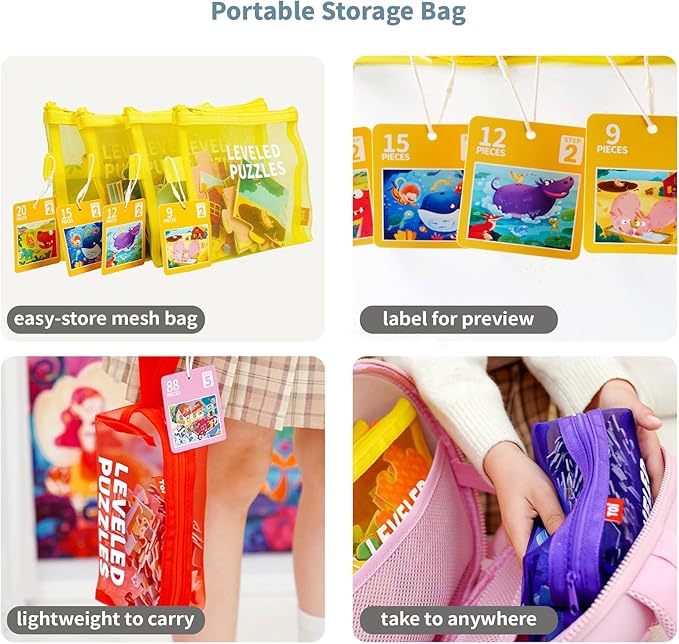 - 👍 [LEVELED PUZZLES] The jigsaw puzzles are designed as seven steps for kids aged 2-8. The difficulty and educational awareness of our kids puzzles increase gradually with steps, including puzzle pieces. You can always find the right one for kids of their age.