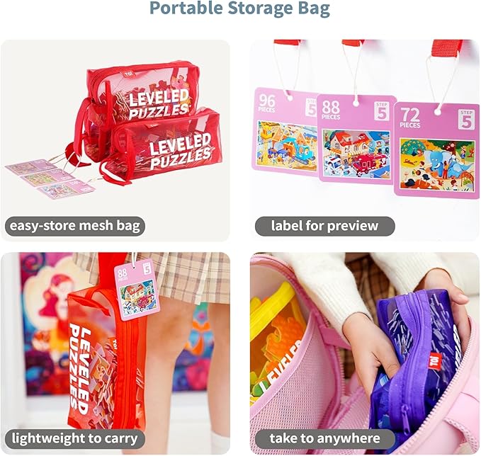 - 👍 [PLAY TO LEARN] Step five is suitable for kids 4-6 to develop their interest and build confidence. Our toddler puzzles aim to cultivate kids' grasp ability, imagination, concentration, logical thinking, aesthetics, and expression skills.
