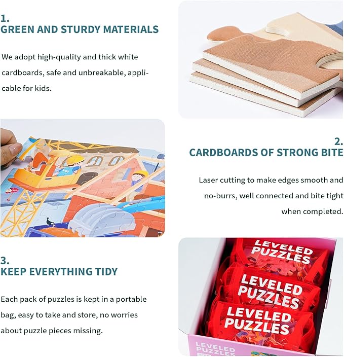 - 👍 [SAFR CHOICE] Toi puzzles are made of white thick and sturdy cardboard. Laser cutting to make edges smooth and no-burrs. The lower the steps, the fewer and larger the pieces to prevent toddlers from swallowing. Certified by CPC, EN71, TUV, ITS & ASTM. No worries to play.