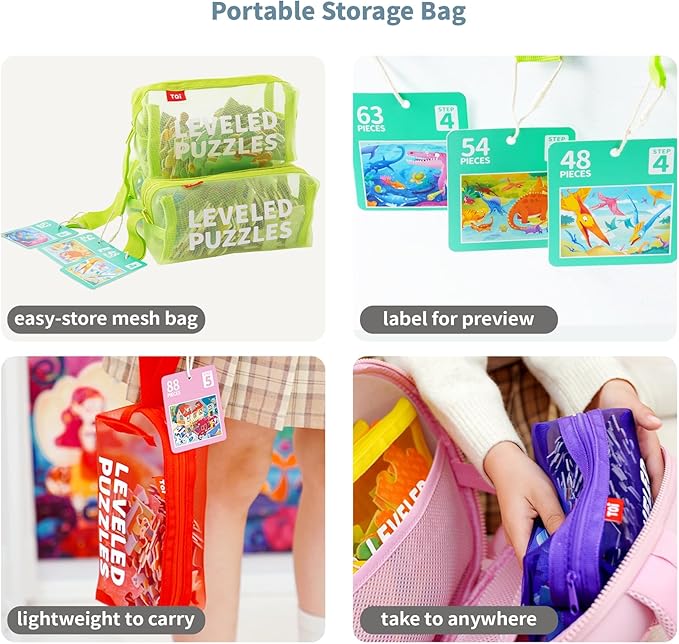 - 👍 [PLAY TO LEARN] Step four is suitable for kids 3-5 to develop their interest and build confidence. Our toddler puzzles aim to cultivate kids' grasp ability, imagination, concentration, logical thinking, aesthetics, and expression skills.