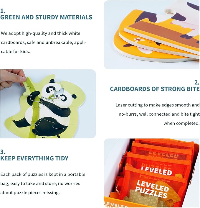 - 👍 [SAFR CHOICE] Toi puzzles are made of white thick and sturdy cardboard. Laser cutting to make edges smooth and no-burrs. The lower the steps, the fewer and larger the pieces to prevent toddlers from swallowing. Certified by CPC, EN71, TUV, ITS & ASTM. No worries to play.