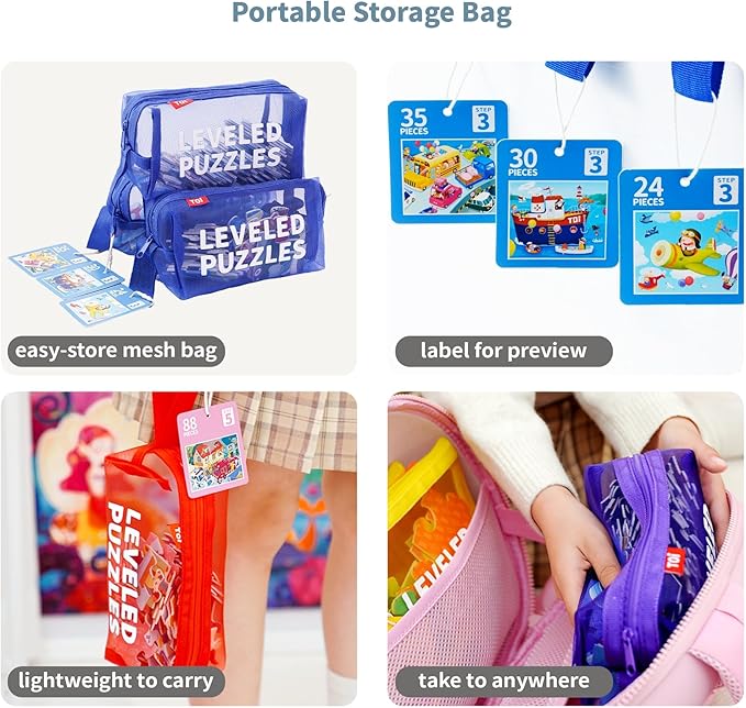 - 👍 [LEVELED PUZZLES] The jigsaw puzzles are designed as seven steps for kids aged 2-8. The difficulty and educational awareness of our kids puzzles increase gradually with steps, including puzzle pieces. You can always find the right one for kids of their age.