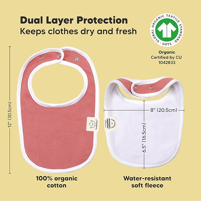 - Super Absorbent - Our organic baby boy and girl bibs are made with 100% organic cotton (GOTS-certified) and backed with water resistant fleece for added absorption. This dual layer design helps to keep your baby clean and fresh all day long. Suitable for newborns, infants, toddlers, heavy droolers and teething babies.