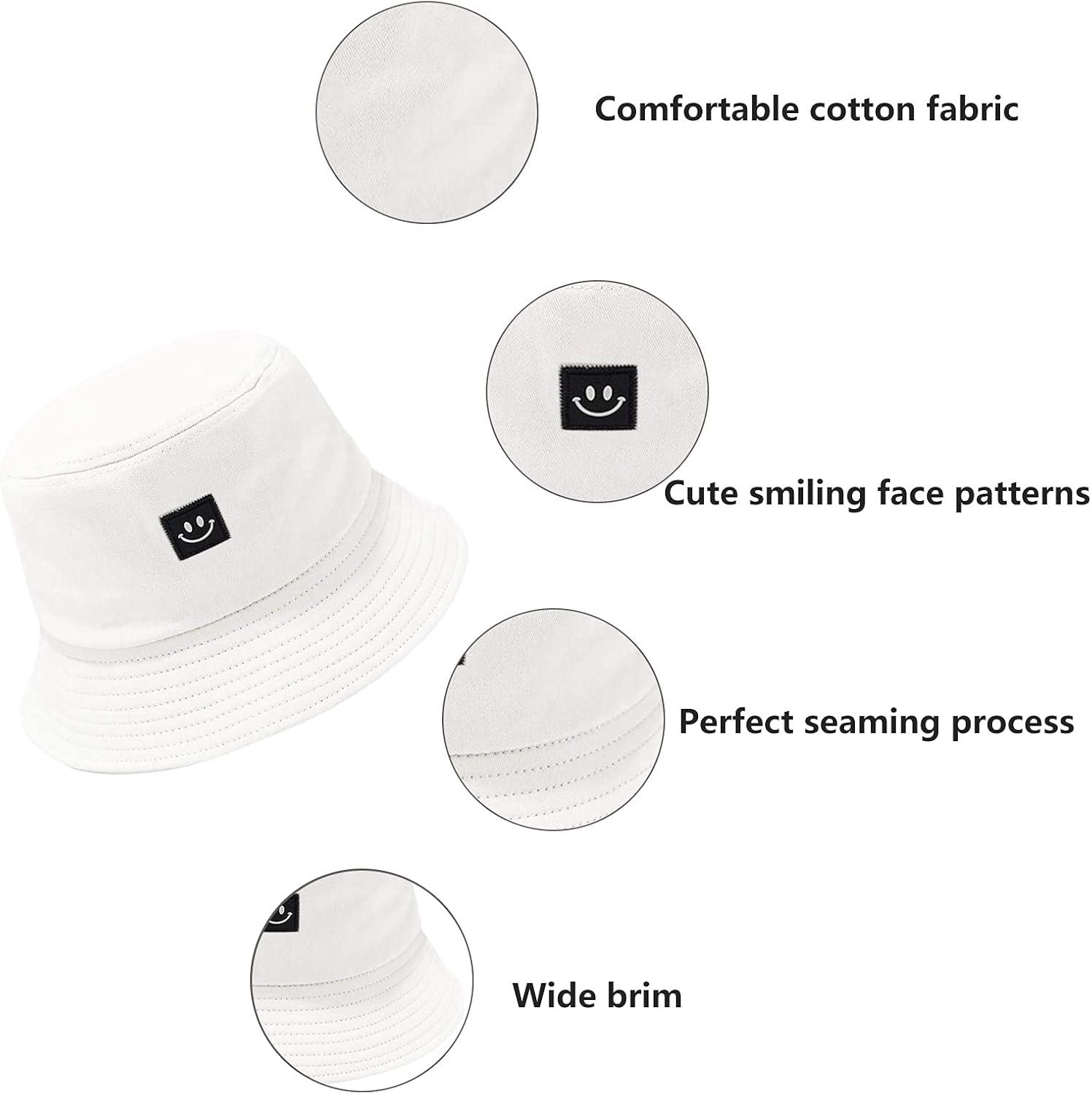 - 【Lovely and Stylish】Designed for unisex,our bucket hats come in various distinct colors to match your children individuality.The pretty smile logo makes it a great design.Easy to wear and pair with other clothes,suitably perfect for both boys and girls.Makes your kids more adorable, fashionable and attractive.Ideal gift for your cute baby.