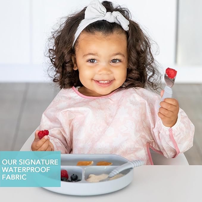 - SAVING YOU FROM THE MESS – Perfect for self-feeding, the long sleeve bib offers generous coverage to help you save an outfit; made from Bumkins’ original waterproof fabric – 100-percent polyester embedded with TPU; machine washable for easy cleaning