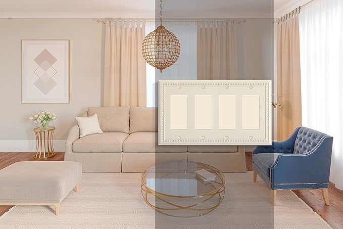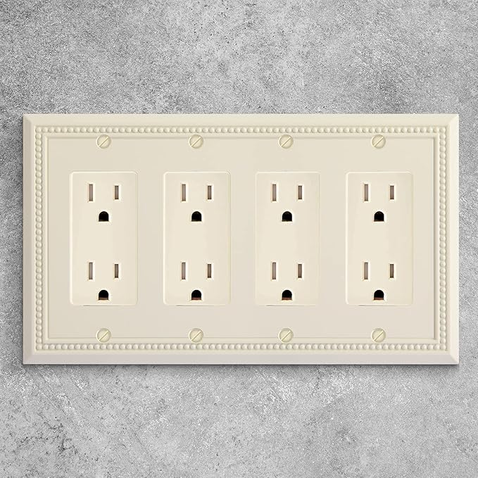 Henne Bery Sunken Pearls Heavy Duty Decorative Wall Plate Switch Plate Outlet Cover (Quad Decorator, Light Almond)