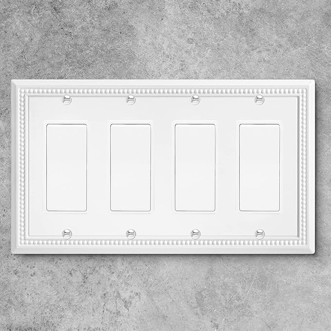Henne Bery Sunken Pearls Heavy Duty Decorative Wall Plate Switch Plate Outlet Cover (Quad Decorator, White)