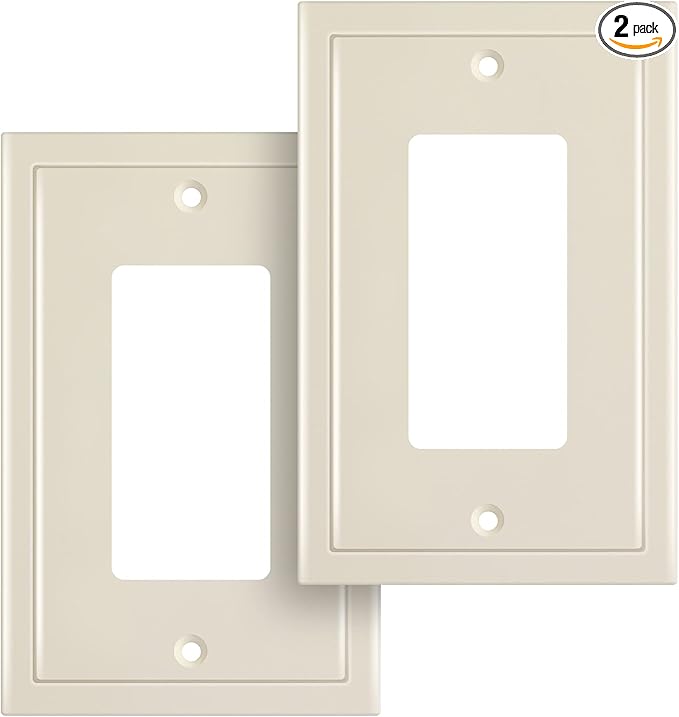 Henne Bery Modern Edge Decorative Wall Plate Switch Plate Outlet Cover, Durable Solid Zinc Alloy (Single Decorator 2PK, Light Almond)