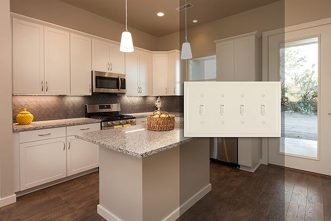 Henne Bery Modern Edge Decorative Wall Plate Switch Plate Outlet Cover, Durable Solid Zinc Alloy (Quad Toggle, Light Almond)