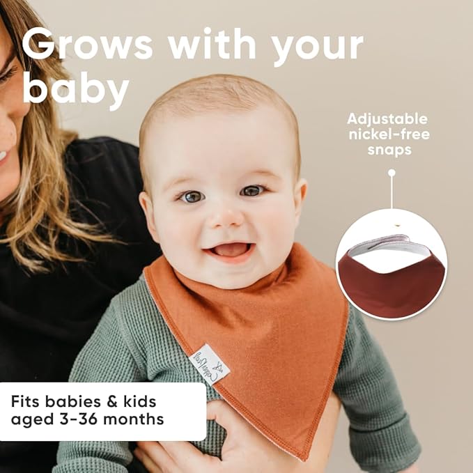 Copper Pearl 4 Pack Soft Cotton Baby Bibs for Drooling and Teething, Absorbent Drool Bibs for Baby Girl and Boy, Adjustable to Fit Newborns to Toddlers, Tons of Styles (Dune)