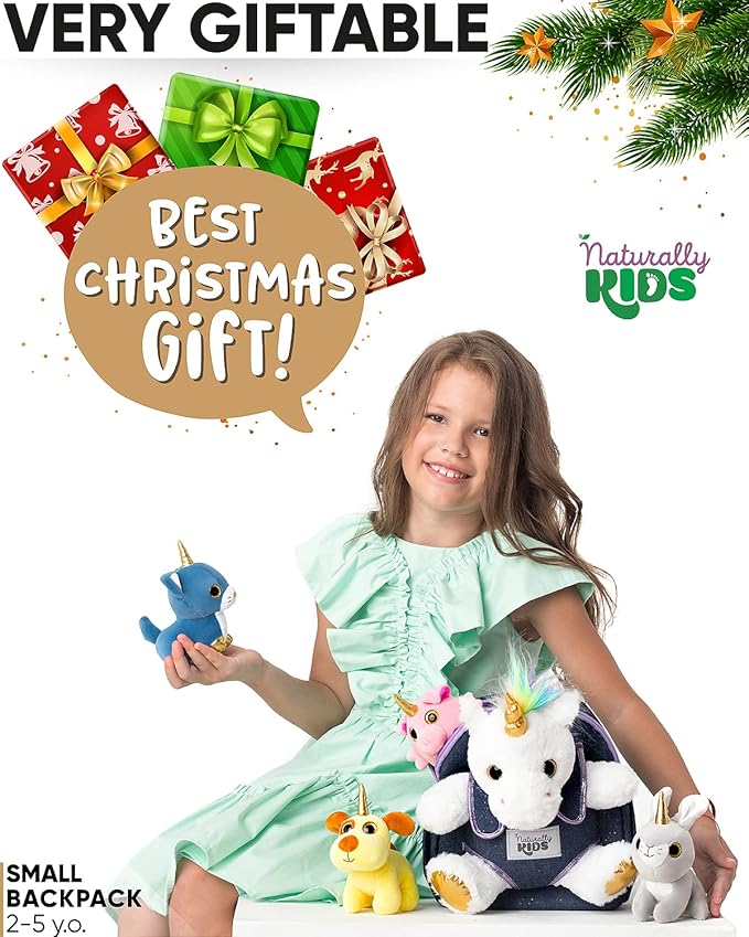 Naturally KIDS Toddler Unicorn Backpack w Plush Unicorn Toys, Gifts for 2-5 Year Old Girls, Toddler Backpack