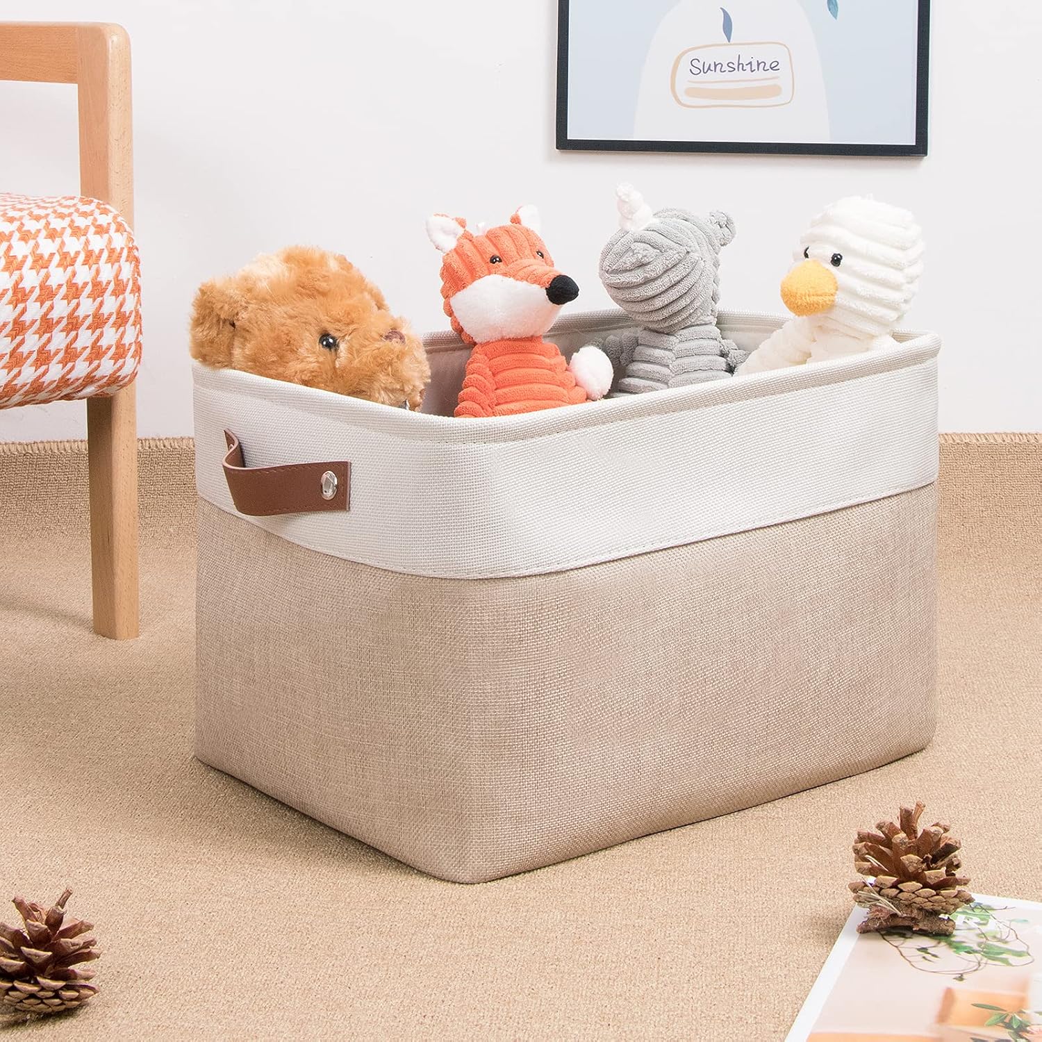 - 【Modern & Decorative】The fabric baskets for storage with neutral colors can match a lot of home styles - keeping your home nice and tidy. Fabric storage baskets for shelves ideal for living room, bedroom, bathrooms, utility room, kids room, Nursery Room, craft room, playroom, baskets for gifts empty, shelf, baskets for closets, dorms, condos, laundry room, toilet, or even in the hallway.