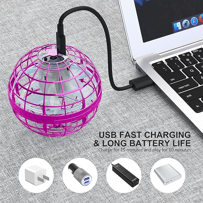 - Endless Fun with Hover Ball:Experience uninterrupted fun with USB Charging feature of this flying orb ball.Achieve a full charge in just 20 minutes and enjoy 8-10 minutes of continuous flightIt supports versatile charging options,including computers,power adapters, mobile phones,and portable chargers.The indicator light provides real-time charging status updates, ensuring you're always ready for the next adventure