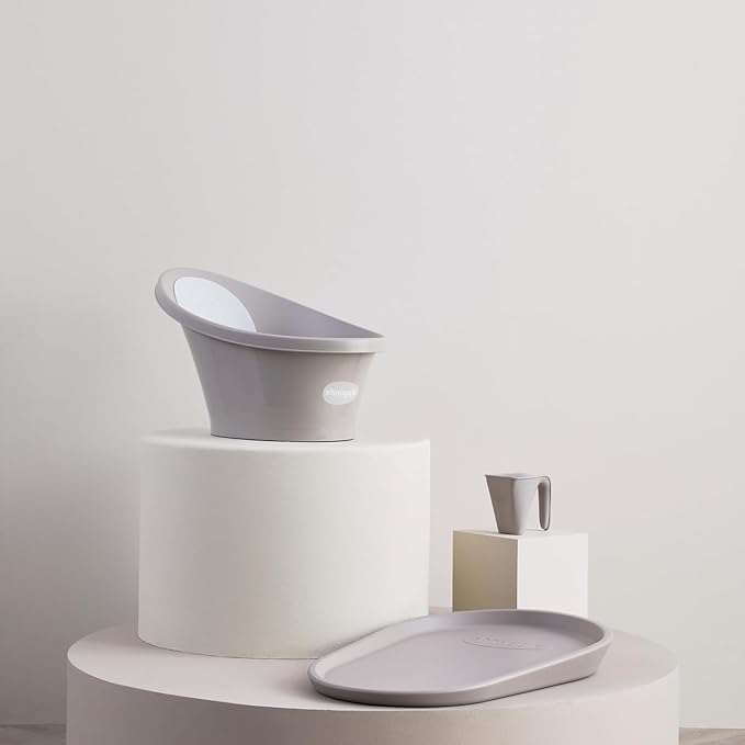 Shnuggle Newborn Baby Bath | Built in Support Bump and Soft Backrest | Suitable from Newborn | Bath Seat Support Includes Plug | Taupe
