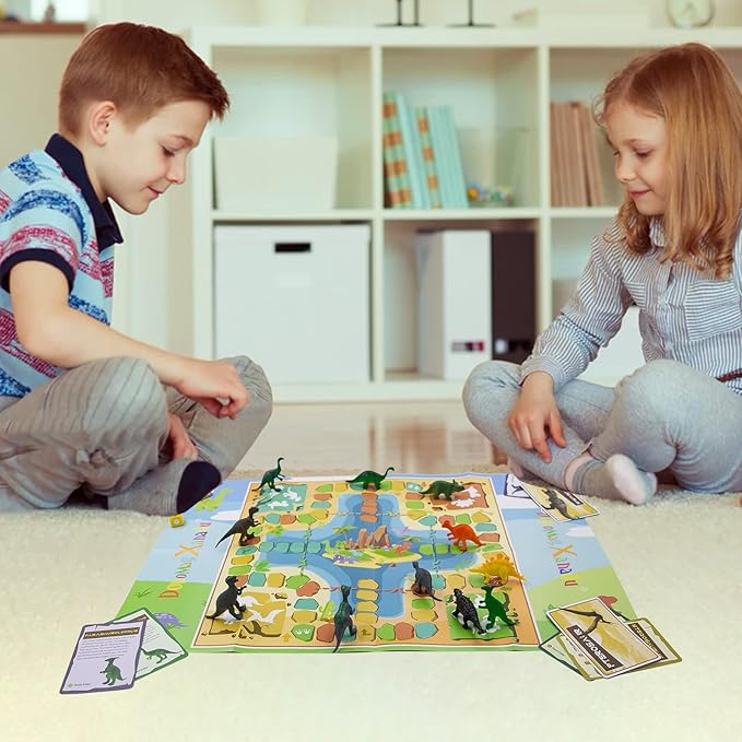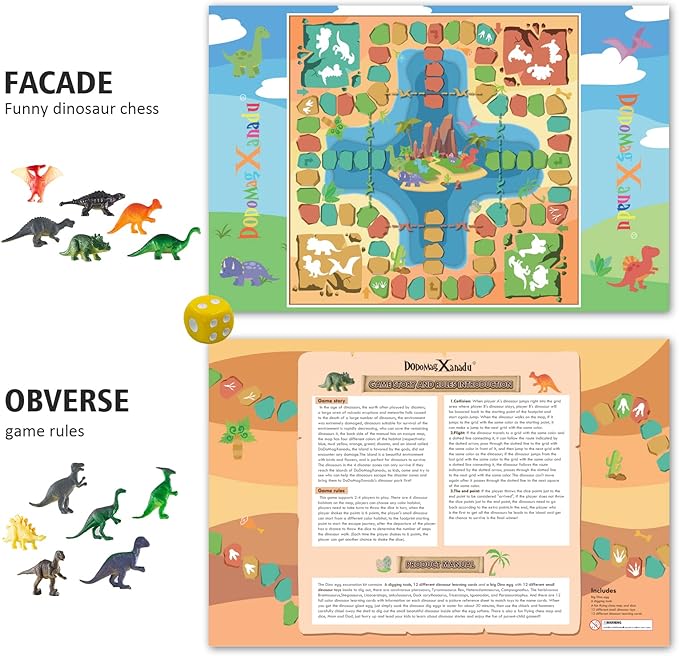 - 4.Funny Dice Dinosaur Theme Flying Chess . Our dinosaur egg excavation set also comes a dinosaur theme flying chess with a Dice for competitive game. Flying chess is a competitive game consisting of four colors with a board painted our dinosaur , suitable for 2 to 4 players. Each player takes a turn to throw the dice once. Great exaction activity for kids.
