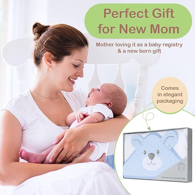 Mother's Choice Organic Baby Hooded Towel - Large Size, Cotton, Ultra-Soft & Absorbent Bath Towel for Newborns, Infants, Toddlers, Boys & Girls with Animal Hood (Blue Bear)