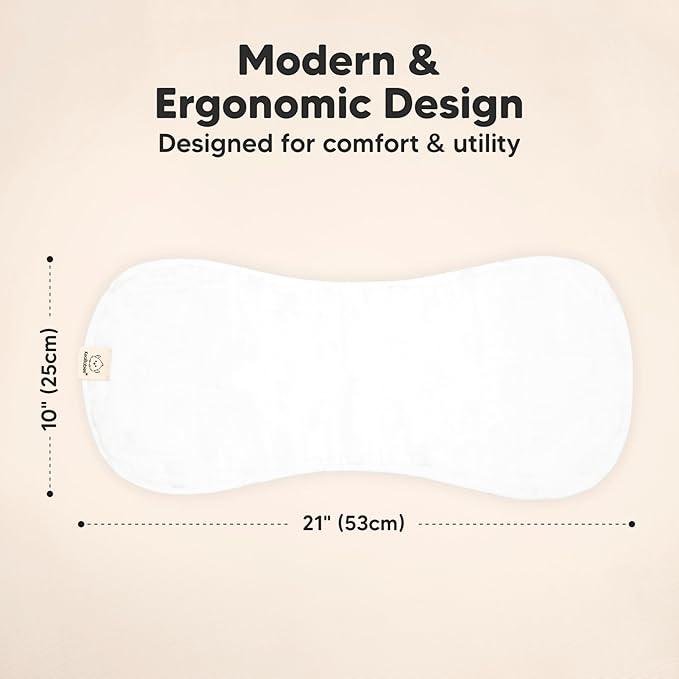 - Maximum Shoulder Coverage - Our burping cloths for babies are specially designed in figure-8 to ensure a secure fit, preventing the burp rags from slipping. Measuring 21" x 10", this neutral burp cloth provides ample coverage for your shoulders.