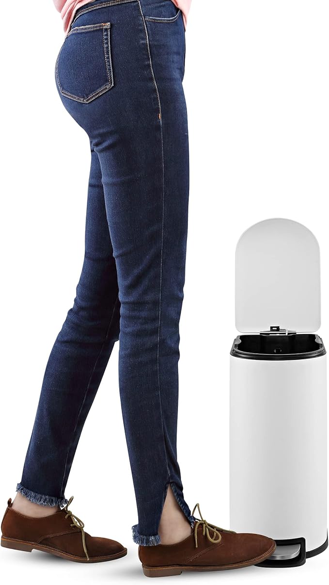 - STYLISH & PRACTICAL DESIGN: happimess Trash Cans clean-lined designs blend beautifully into your existing decor; Dispose of trash hands-free with our convenient step pedal; built-in damper lowers the lid quietly, and closes it tightly to keep odors inside