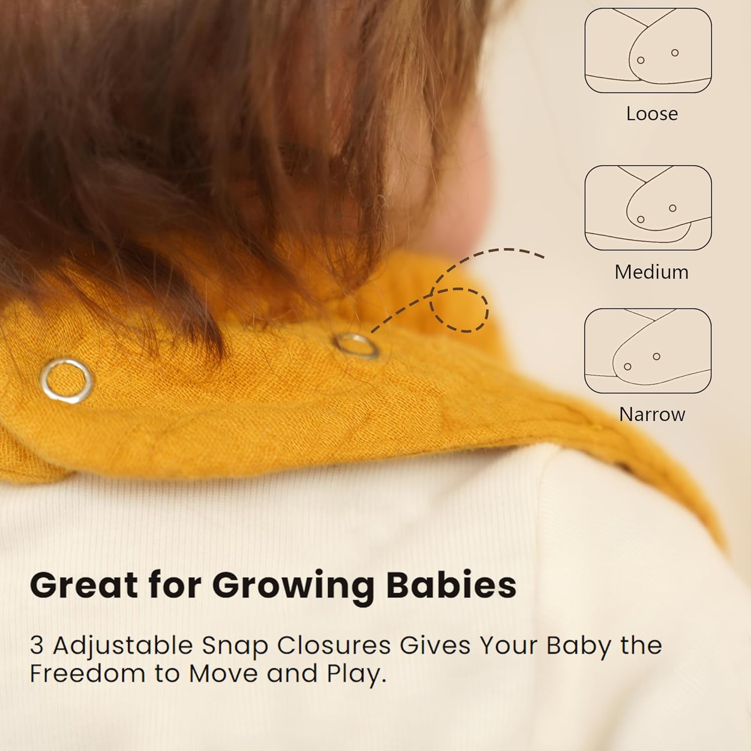 - Adjustable Size: Thoughtfully fitted with 2 nickel-free snaps, our cotton bandana bibs can be easily adjusted to comfortably fit your baby’s neck. This baby bib will beautifully fits newborns and babies up to 36 months.Hand and machine washable for increased convenience