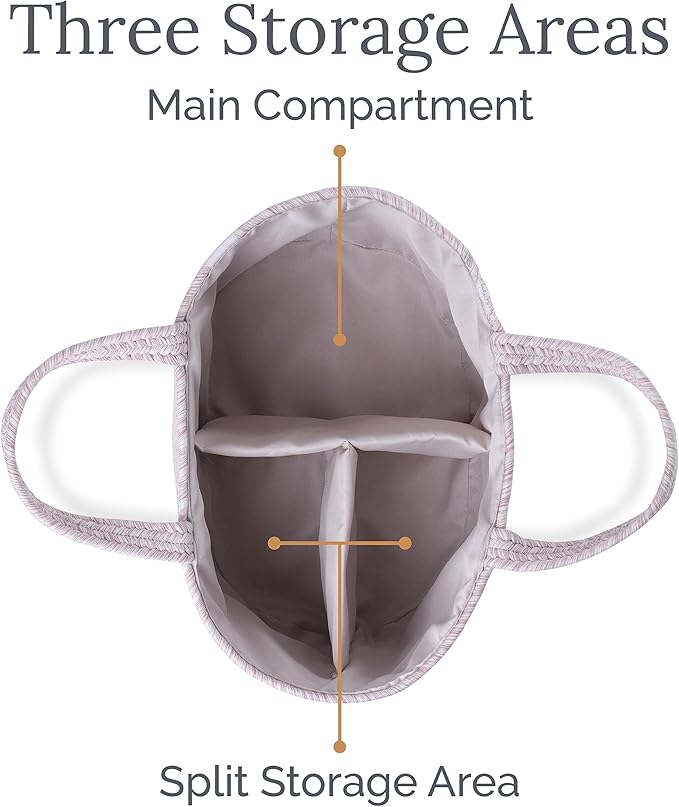 - ORGANIZE YOUR DIAPERING STATION: Natemia rope baby nappy caddy organiser measures 38x25x20cm and features three spacious compartments to store diapers, wipes, and so much more, keeping all your diapering essentials organized and close at hand.