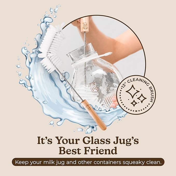 - Makes Milk Bottle Cleaning A Breeze - Keep your glass flask, water jar, or juicer bottles spotless with Almond Cow’s kitchen brush. Our bottle brush cleaner has premium-quality bristles and a long handle to clean your milk jug from top to bottom.
