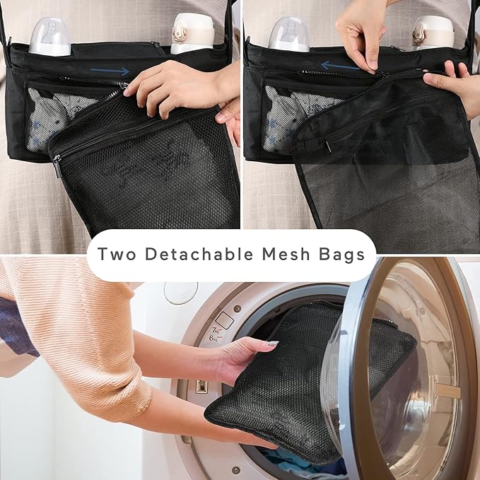 Momcozy NON-SLIP Universal Stroller Organizer | Insulated Cup Holder | Detachable Phone Bag & Shoulder Strap | Fits Uppababy, Baby Jogger, Britax, BOB, Umbrella and Pet Stroller