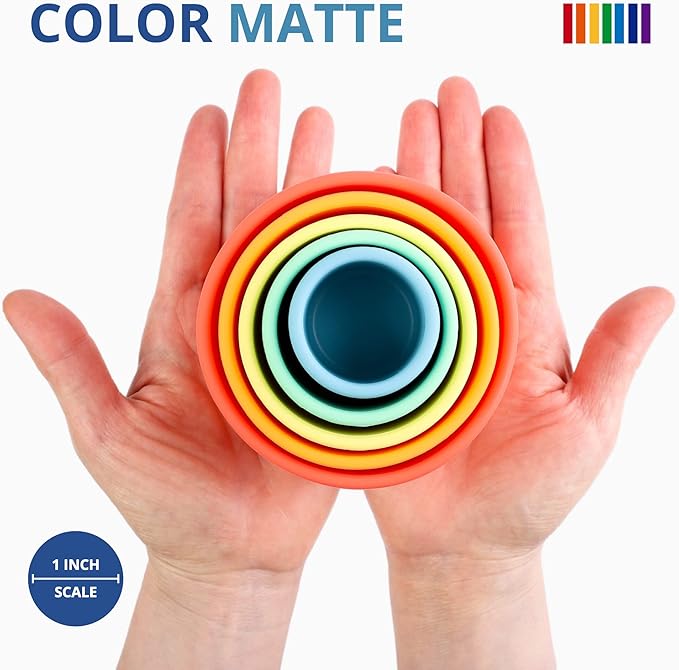 - Nest, Stack and Play - Build it up and knock it down. Silicone rainbow stacking and nesting cups are durable, versatile and ideal for open ended play, helping little ones work on motor skills and color recognition through play.