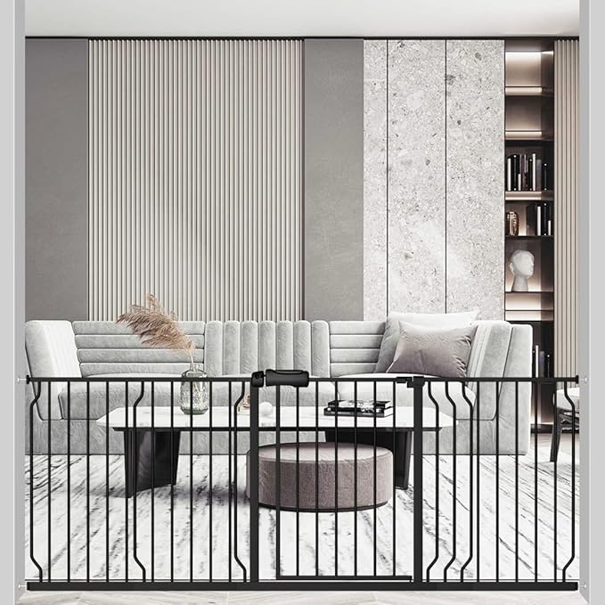 - 【Safe for Baby】Your curious crawlers will be "blocked" by the safety extra wide baby gate because we design the double-lock safety release which makes it difficult for toddlers to open the gate ,but adults can operate with one hand and pass quickly.