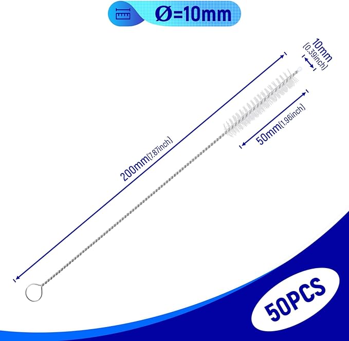 - 【50 PCS Reusable Drinking Straw Cleaner】 Set including 50 PCS of straw cleaner brushes in 10mm diameter. Greatly work for cleaning your straws, Baby Bottles, Hummingbird Feeders and others.