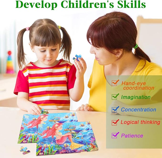 - đ§©ăSKILLS DEVELOPMENTă kid puzzles ages 4-8 will be conducive to abilities improvement of spatial imagination, patience and analysis. To put kids puzzles together also helps kids focus their minds and inspires brain thinking ability. Kids do kids puzzles ages 4-6 with other partners, communication and collaborative skills are also improved