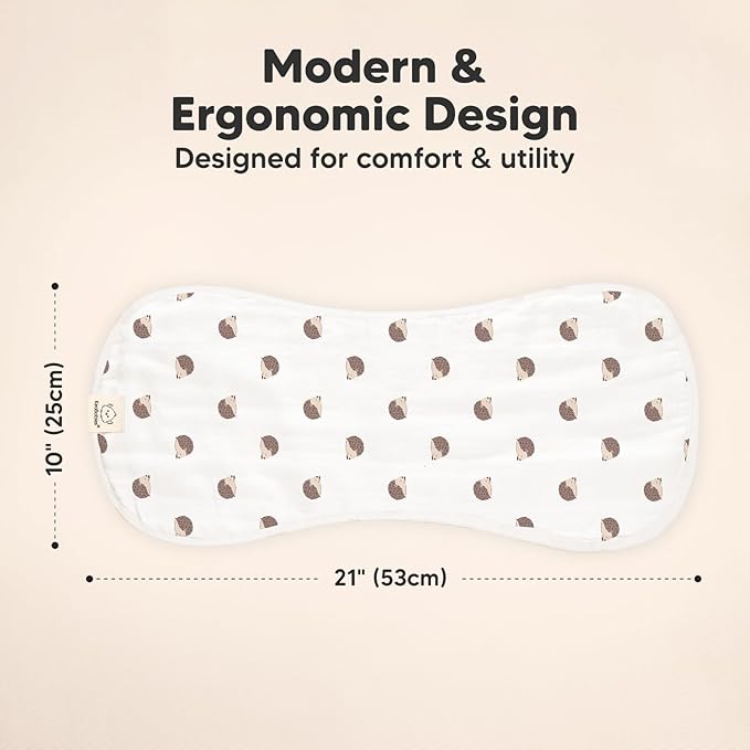 - Maximum Shoulder Coverage - Our burping cloths for babies are specially designed in figure-8 to ensure a secure fit, preventing the burp rags from slipping. Measuring 21" x 10", this neutral burp cloth provides ample coverage for your shoulders.
