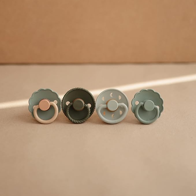 FRIGG Daisy Natural Rubber Baby Pacifier | Made in Denmark | BPA-Free (Biscuit/Lily Pad, 6-18 Months) 2-Pack