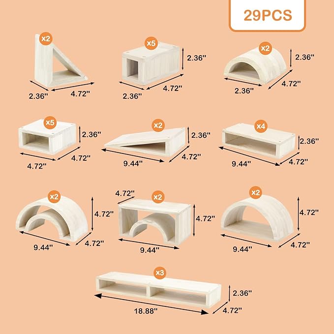 - 【29 Giant Hollow Wooden Blocks】 This premium toddler blocks set includes a good variety of 29 wooden building blocks, ideal for kids versatile building at home, daycare or school. A gift that will be loved and used again and again. Everyone will enjoy this versatile toy!