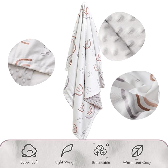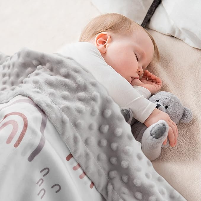 - OEKO-TEX certified: Soarwg Kids baby blankets are made of 100% high-quality polyester with a double-layer design. The back features minky fabric with a dimple dot pattern, offering softness and warmth that’s gentle on your baby’s delicate skin. Certified STANDARD 100 by OEKO-TEX, it ensures safety for your baby and peace of mind for parents
