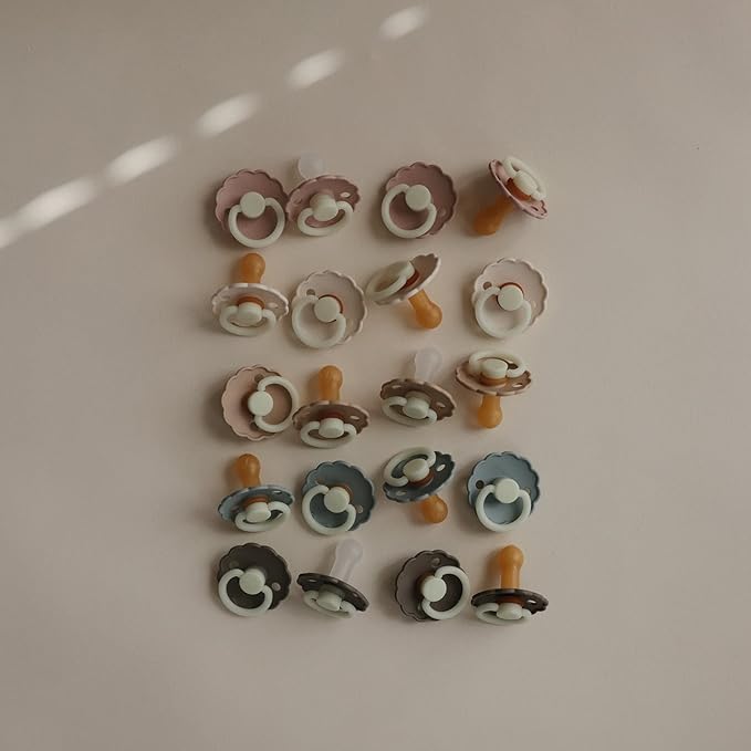 FRIGG Daisy Night Natural Rubber Baby Pacifier | Made in Denmark | BPA-Free (Portobello/Croissant, 0-6 Months) 2-Pack