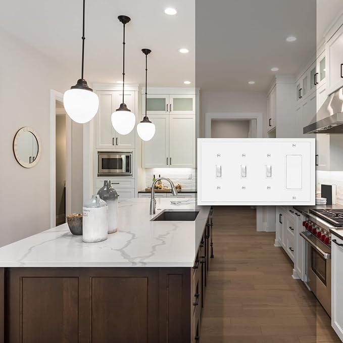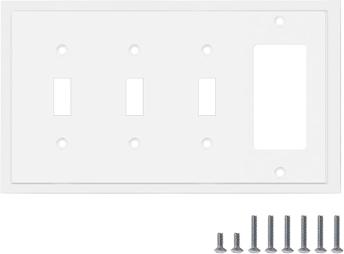 Henne Bery Modern Edge Decorative Wall Plate Switch Plate Outlet Cover, Durable Solid Zinc Alloy (Triple Toggle/Single Decorator, White)