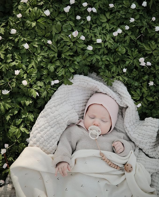 - The FRIGG line of daisy natural latex pacifiers has been thoughtfully designed for your baby's comfort. The outward curve keeps the pacifier off their delicate skin, while features like air holes and a security handle ensure your baby stays safe.