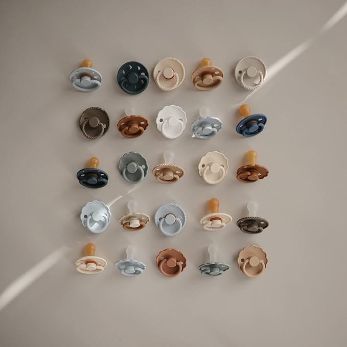 - The FRIGG line of moon phase rubber pacifiers is thoughtfully designed for your baby's comfort and inspired by the moon in motion. The outward curve keeps the pacifier off delicate skin, while air holes and a security handle ensure your baby stays safe.