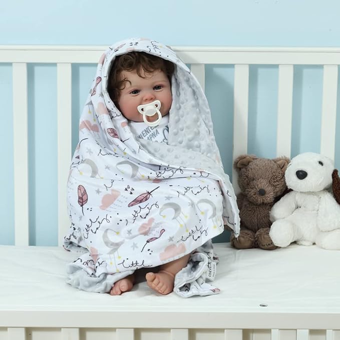 CREVENT Soft Plush Minky Baby Blanket for Girls, for Newborns, Toddlers Bedding Napping - Sweet Dream 30x40 Inches