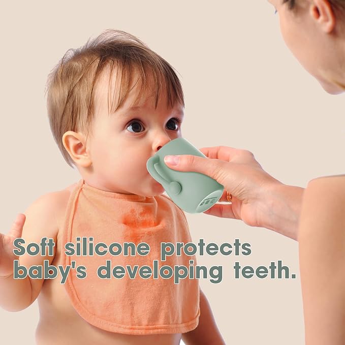 - A PRACTICAL CUP: It is gentle and flexible, specifically designed to fit baby’s mouth and hands. Soft silicone protects baby's developing teeth, it is a great for toddlers trying to master fine motor skills and drinking independently; Silicone is heat-resistant, you can use it with cold, warm and hot foods and liquids, it's safe to pop in the microwave, dishwasher, freezer and even oven