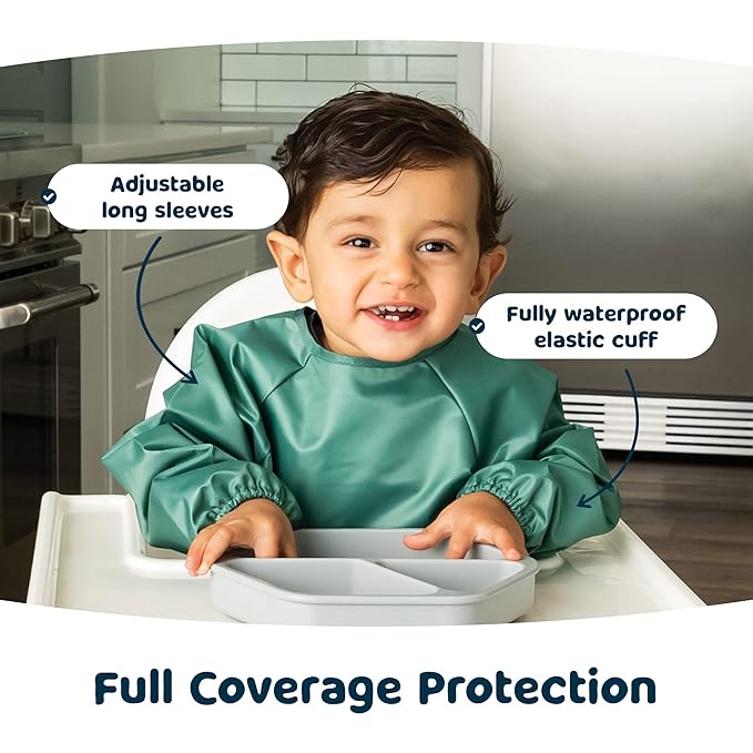 - Mess-Proof Mealtime: Our long sleeve bibs make every meal easy and worry-free for parents. Soft, waterproof fabric and gentle elastic cuffs provide full coverage to keep little ones clean and comfortable.