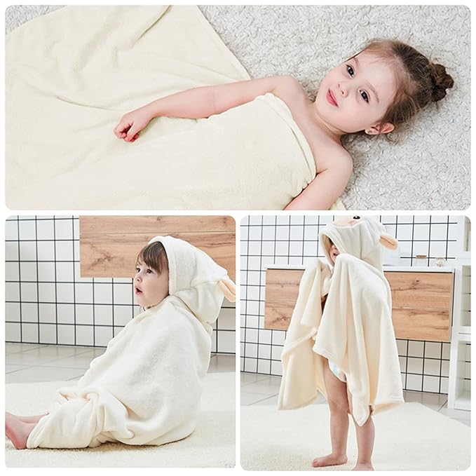 - ULTRA SOFT and ABSORBENT:The kids bath towel is made of high-quality coral fleece,breathable and absorbent, and are as soft as fluffy white clouds, perfect for sensitive skin. Baby hooded towels can ensure that the baby's body and head stay warm especially at night to reduce the baby's risk of catching a cold