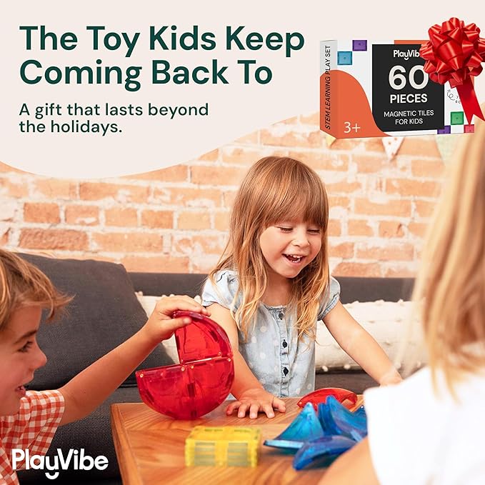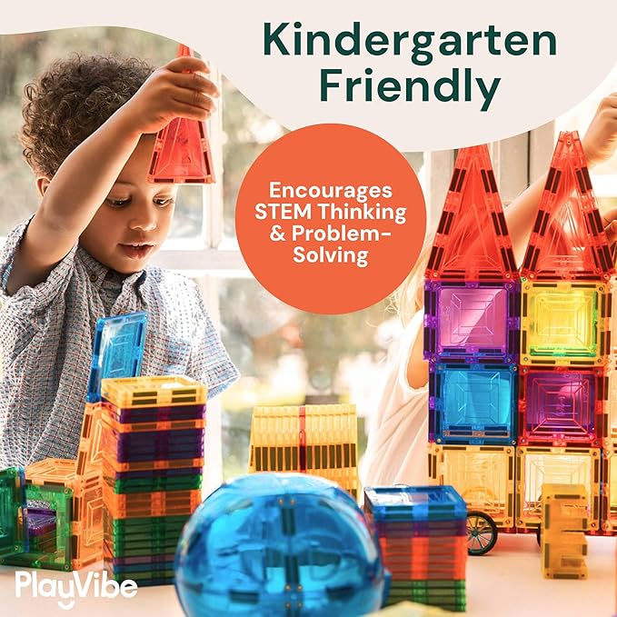 - Creative STEM Exploration: Ignite curiosity with PLAYVIBE Magnetic Tiles, a set of 60 pieces that encourages children to explore shapes and colors. This magnetic tile set enhances spatial awareness and creative thinking for kids aged 3-12