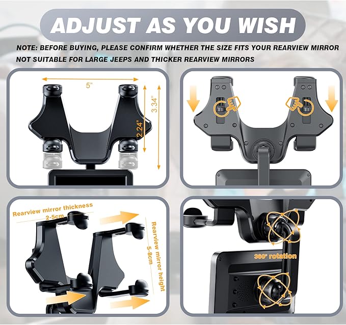 - 【ADJUSTABLE & STABLE】360-degree rotatable between horizontal and vertical screens at your will for a better viewing angle. The camera can be tilted up and down 130° with a 150° wide-angle lens to aim at the baby.The monitor bracket is firm, no need to worry about falling off during driving.