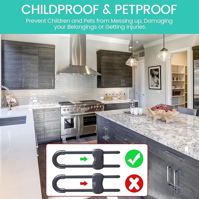 - Quantity: you will get 10 pieces u shape child cabinet locks, enough quantity for you to prevent your little baby or smart baby from reaching off-limit rooms, keeping them safe with closet, cupboards or fridges that are filled with stuff that may cause harm to your babies; And helpful in preventing for babies or pets from messing up your cabinet even the house, these cabinet sliding cabinet latch is childproof and petproof