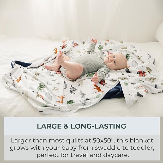 - LARGE & LONG-LASTING: Measuring 50x50", this baby blanket is larger than most, allowing it to grow with your baby from infancy through toddlerhood. Whether it’s used as a swaddle, travel blanket, stroller blanket, or a cozy daycare blanket, it’s designed to last through the years.