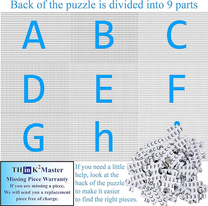 - 【Missing Piece Warranty】 Premium Quality. Full color glossy varnish finish on front with white finish on back. If your puzzle has a missing piece, please contact Think2Master with a photo of the missing piece area & we will send you the missing piece. Each unique piece is made from high quality recycled cardboard & fits precisely. Puzzles are a fun activity to do on a cold fall, rainy or winter day, and make a great gift for Birthdays, Christmas and over the entire holiday season.