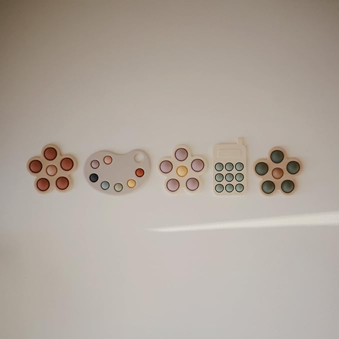 - Made with little hands in mind, our flower press toy encourages sensory exploration and the development of fine motor skills with its simple design and soft colors. Featuring food grade silicone and a BPA-free plastic frame, children will tap into learning as they press the bubbles and hear a gentle pop.