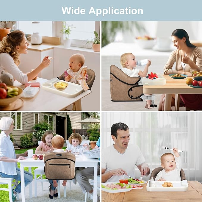 - 【Fit Most Tables】: The portable high chair is suitable for most types of tables and countertops between 0.79" to 4.73" (20-120mm) thick. Can be used to eat, play and learn on the kitchen island and in the dining room table with limited space, such as at home, in the restaurants, visit friends, picnic, camping, travel, etc. Note - not suited for glass material, single foot, covered tablecloth, uneven surface, softwood, too low height.